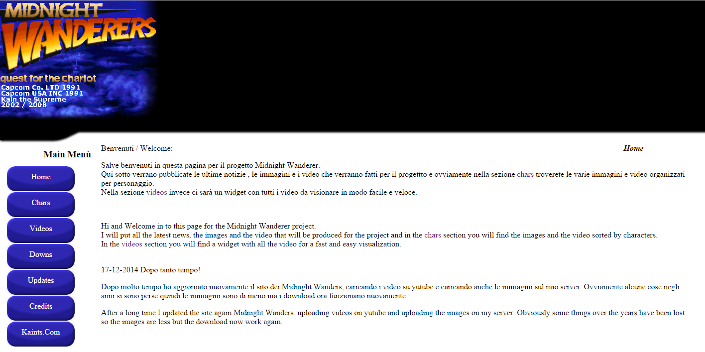 I speak of the site of my game for winmugen "Midnight Wanderers!" I updated re entering all the videos and all (or almost all) the missing images.